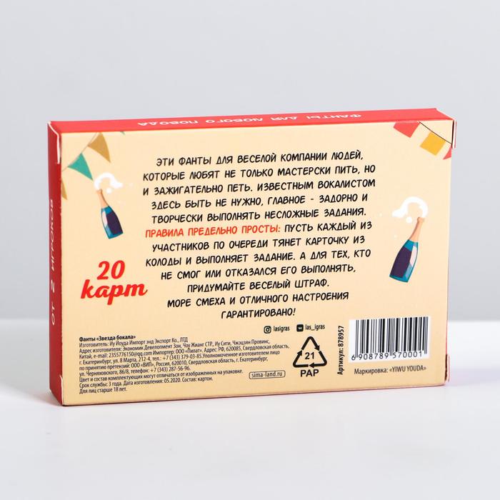 Купить игра для компании "фанты звезда бокала" 20 карт от 120 руб. с доставкой до пункта выдачи в Енисейске. Интернет магазин ДекаМаркет. Оплата при получении.